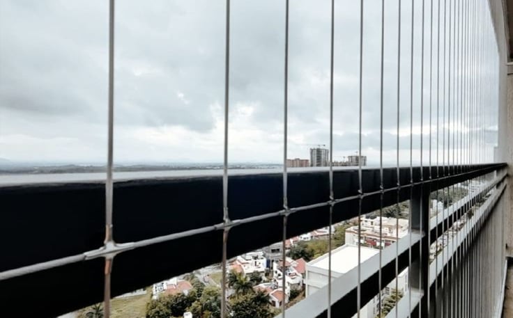 Installed on a seaside apartment, our rust-proof 316-grade stainless steel nets withstand salty air while keeping birds away without blocking the ocean view.